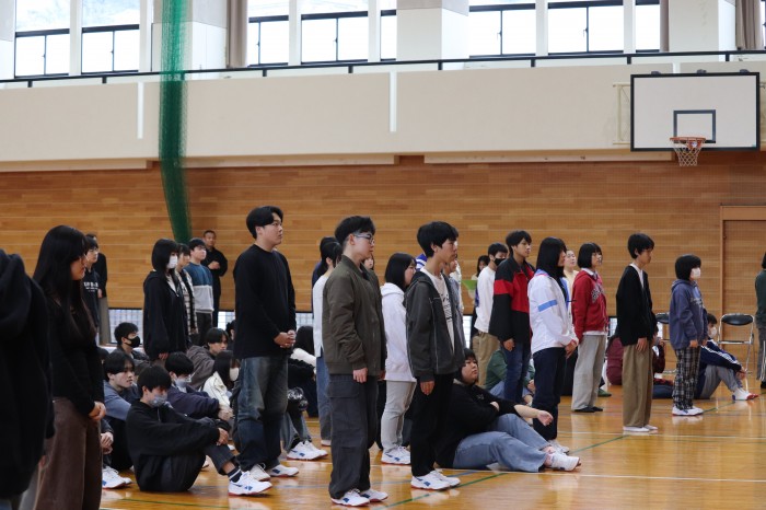 副校長先生から「生徒会の仕事はみんなで手をつないで階段を昇るようなもの。みんなで協力して去年より、昨日よりさらにいい学校にしましょう」とお話があり、生徒は真剣に聞いていました。