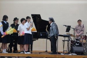 ジャズはアメリカで生まれ、自由で、その場で観客を楽しませる即興性が特徴の音楽です。今回は特別なプログラムを演奏してくださり、生徒たちも自由な手拍子やコールアンドレスポンスでジャズ特有の雰囲気を楽しんでいました。