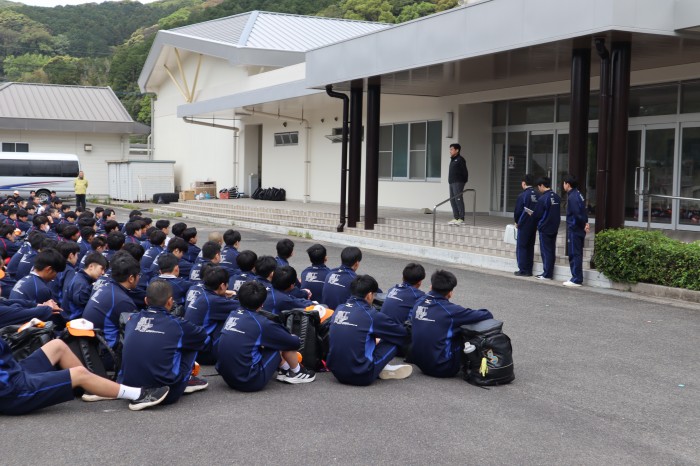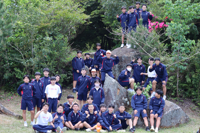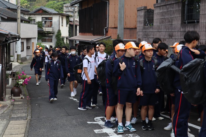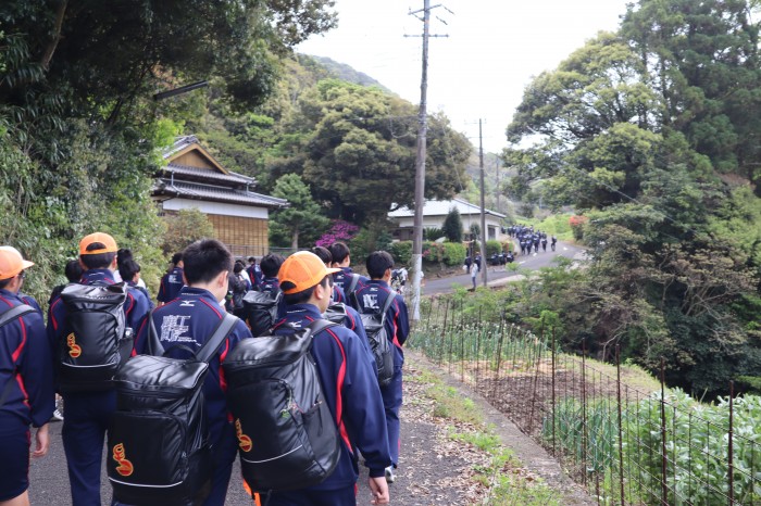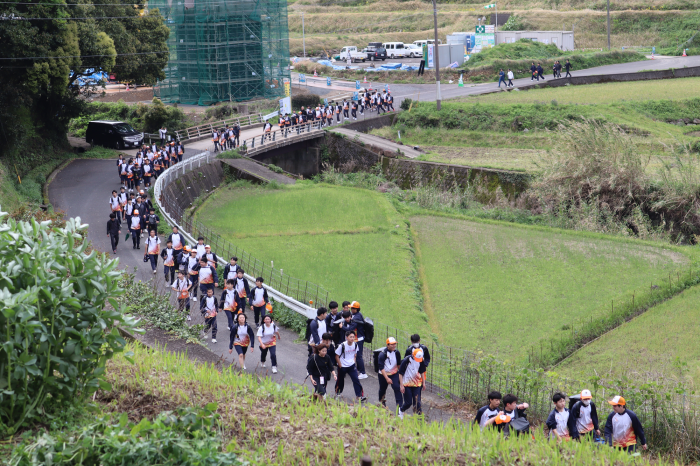 本校体育館前から白岳高原までの片道約7kmの道のりを自然を楽しみながら進みました。