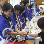 バザー販売では、対馬高校の生徒と一緒に「いらっしゃいませ」と呼び込みをして、たくさんの方々に製品を手に取っていただきました。また、「組みひも」の実演コーナーを設けて、製作する様子を見てもらったり、体験してもらったりしました。見学者からの質問に答えたり、体験に来た幼児や児童に優しく教えたりして、交流を図ることができました。