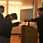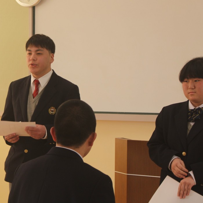 新しい生徒会長と副会長に任命状が授与され、一言ずつ挨拶をしました。