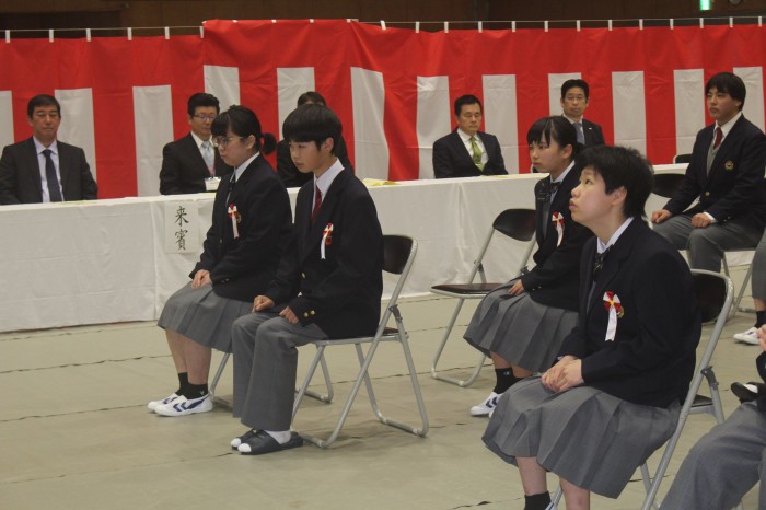 新入生7名は緊張した面持ちでしたが、部主事の呼名に返事をして高校生活をスタートしました。
