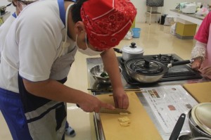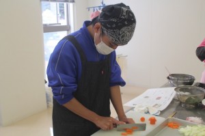11月13日(木)に、対馬市交流センターで保健師の方のご指導の下、調理実習を行いました。