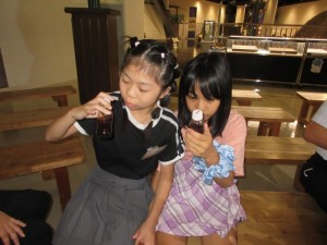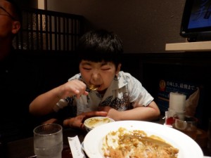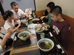 食べたいメニューをカツ料理店とうどん料理店から選択し、たくさんのお客さんが利用する中でも、マナーを守っておいしくいただきました。