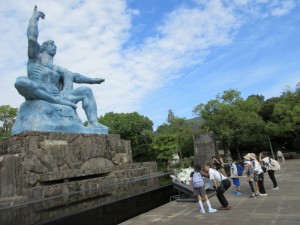 一人一人が平和の誓いを行った後、鳩のリースを献納しました。平和記念像の他にも平和に関する像をたくさん見学し、たくさんの人々が平和を祈っていることを知ることができました。