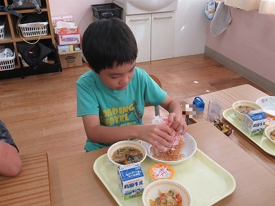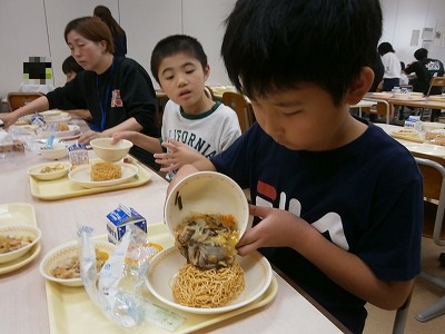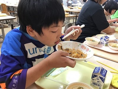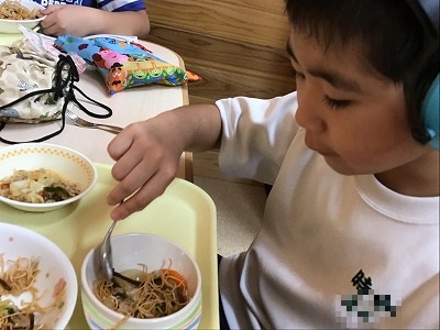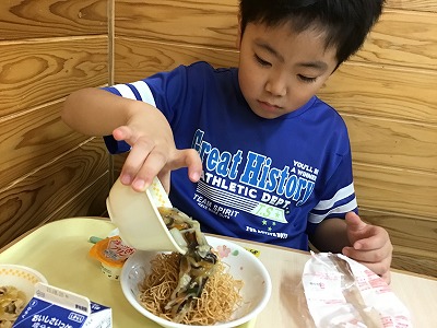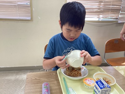皿うどんを作る工程の一つを学びながら、自分で完成させた皿うどんをおいしくいただきました。