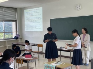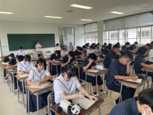 9月24日(水)6校時に、DV防止教室を実施しました。今年度はDV防止ながさきより講師の方をお招きし、講話をしていただきました。講話やロールプレイを通して男女やパートナーと対等な関係を築くことの大切さや、対等な関係を築くために「Iメッセージ」を大切にしたりすることの必要でいを学ぶことができ、命や人権について深く考えることができました。