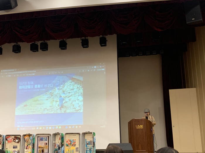 釜山で海ごみを拾うだけでなく、ゴミを使って芸術作品を作成して啓発活動を行うビーチコーミングという活動に長らく精力的に取り組まれています。
