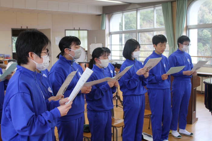 午後は、校歌の練習を行いました。入学して間もないので歌詞を覚えることで精一杯の様子でしたが、一生懸命覚えようとしていました。