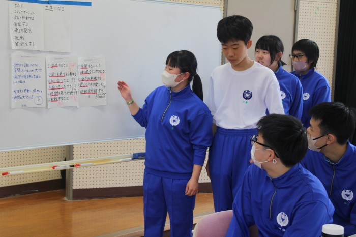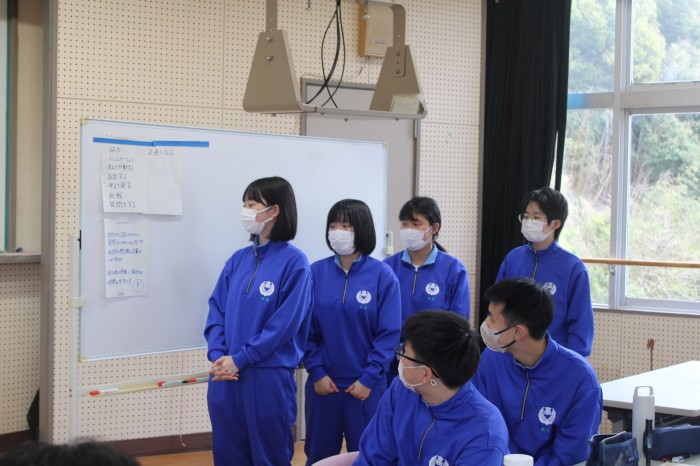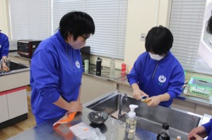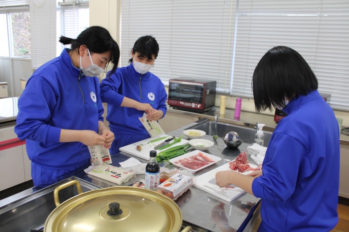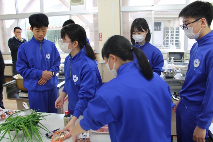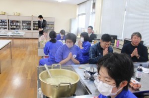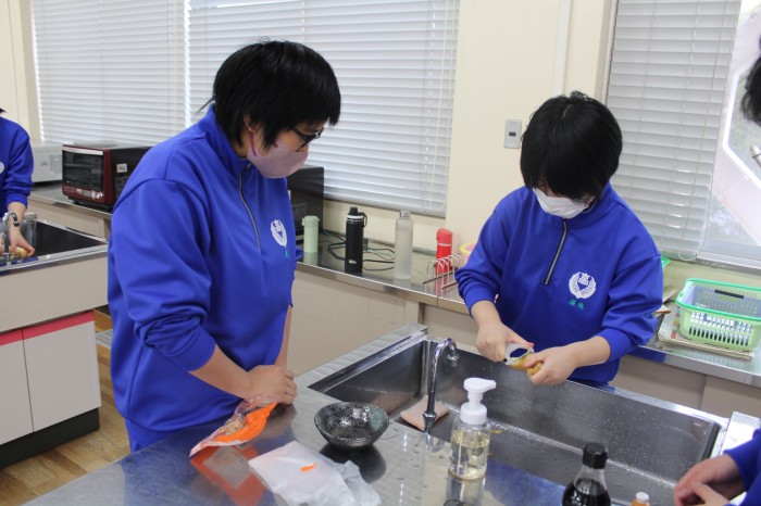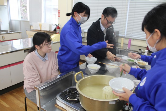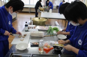 4校時はうどん作りを行いました。例年、研修の昼食はお弁当を注文していましたが、皆で何か1つのものを作り上げようという学年の意向があり、うどん作りを行うに至りました。1年生皆、助け合ったり支え合ったりしながら上手にうどんを作っていました。