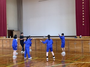そして、後半はブロック別のダンス練習を行いました。このダンス練習、体育大会当日の最終種目として位置づけられ、生徒たちにとっては最も力を入れたい競技とされています。準備期間中、多くの時間をこのダンス練習にあてることになります。1年生にとっては授業が始まって間もない状況でダンスの授業を一度も経験していませんでしたが、なんと、先輩たちが少し手ほどきしただけで踊れるようになっていました。末恐ろしい限りです。