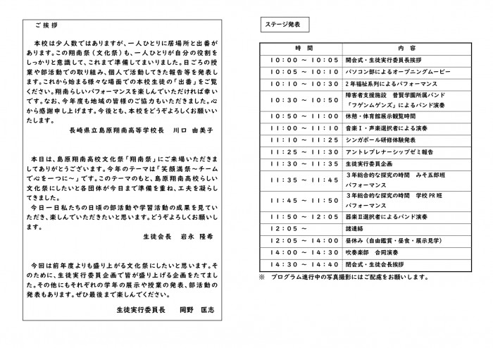 翔南祭について 11月8日(土)実施