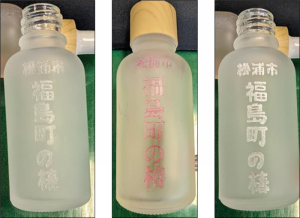 摺りガラスに、ガラス彫刻用の設定で出力しました。(左)アクリル絵の具で色付けをしました。(中・右)マスキングテープを貼り付けて、レーザー彫刻した後、色付けをしました。(右)まだまだ、様々な方法があるようですので、試していきたいです。 |