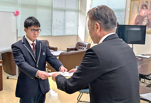 令和8年2月26日(木)農林水産省九州農政局長崎県拠点の方々が来校され、第2回(令和7年度)みどり戦略学生チャレンジ九州ブロック大会において「九州みどりチャレンジ賞」を受賞しました。