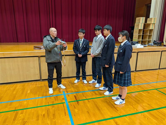 令和8年1月21日(水) 先週に引き続き、1年生「プレまつナビ」の時間に、(株)FlightPILOTから講師をお招きし、空撮用ドローンの初学者向け操作研修会を実施しました。