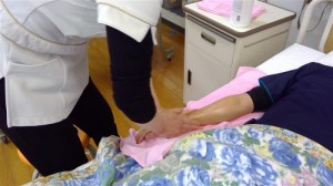 ハンドマッサージは肩のリンパから!! きゅーっと押したりさすったりしていただいくと、 マッサージした方の腕と反対の腕の感覚がまるで 違って驚きでした。