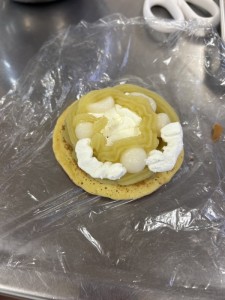 地域の特産物を使った「かんドラ(どら焼き)」の商品開発に向けて、地元菓子店と協力し、試作に取り組んでいます。