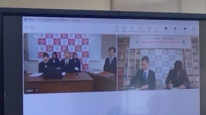 また、本校会議室とリモートでつなぎ、2年商業科 内山 黎奈さん、2年情報処理科 大島 勇歩希さん、