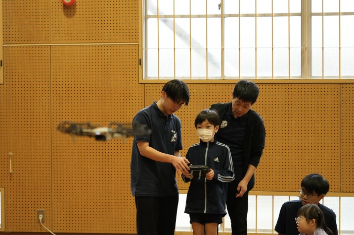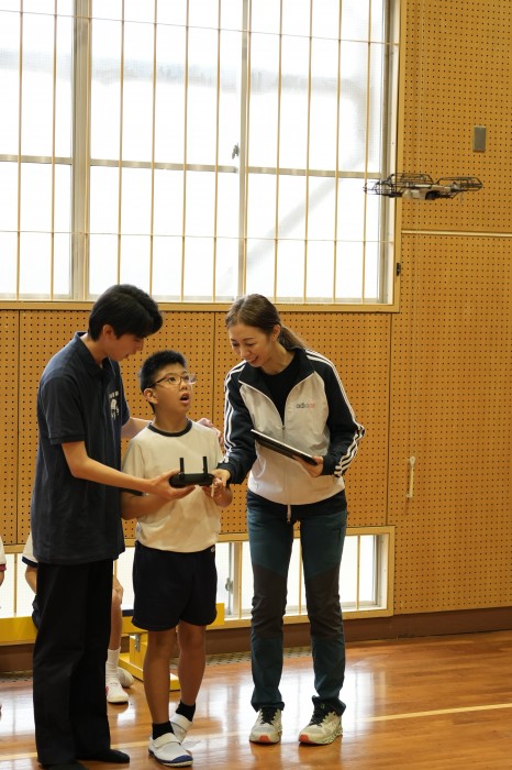 空中ドローンプログラミング(低学年)→ 空中ドローンによる撮影(集合写真撮影)