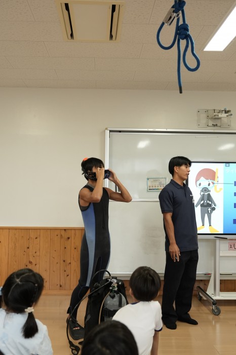 挨拶・概要説明 → お魚クイズ、実施海域の紹介、ダイビングの紹介、魚種の紹介 →