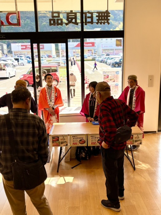 ねぎとろ、たこ(県内産)でした。足を運んでくださったお客様とは、商品の事、