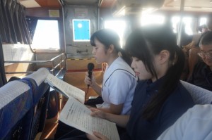 歴史・文化班の前田さんと山田さんがガイドの練習をしているところです。