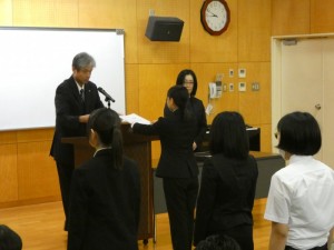 10/2(木) 後期専門委員ならび新生徒会役員の任命式が行われました。呼名がされると任命され
