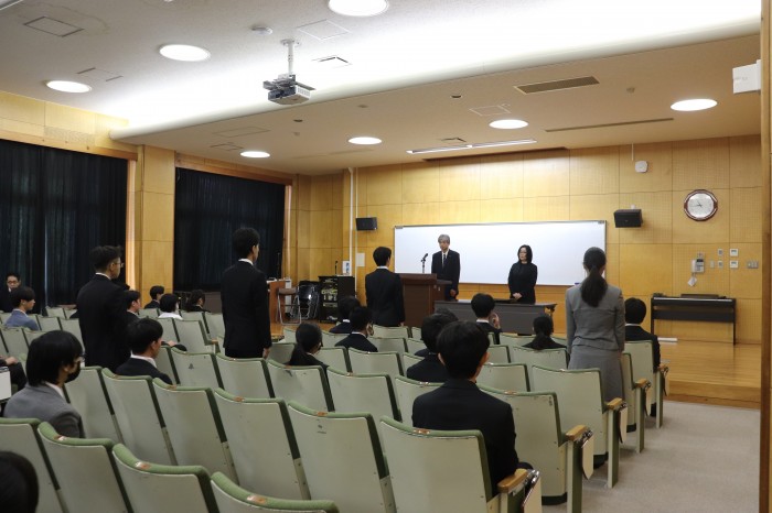 意識し、学校生活にあたってほしいと話されました。後期には体育大会、中央祭等、様々な学校行事