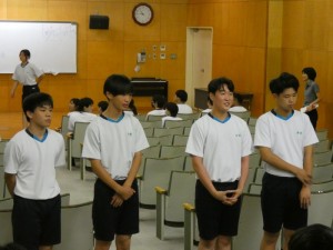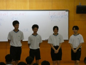 応援リーダーが意気込みを語りました。皆さんで協力して体育大会を盛り上げていきましょう。
