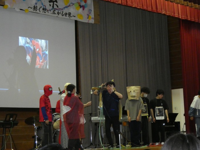体育館でのステージ発表では生徒会企画や音楽関係の合奏や合唱が行われ、大いに盛り上がりました。