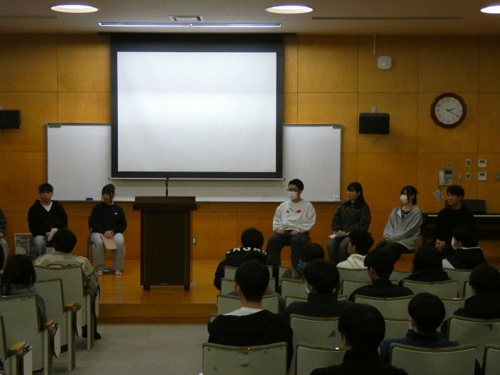 2/20(金) 「進路を語る」の時間では、進路が決定した3年次生が、下級生に進路活動についての