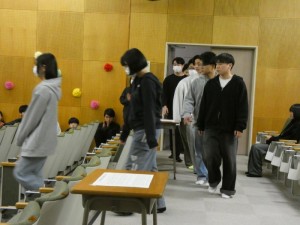 2/26(木)「卒業生を送る会」が行われました。思い出ビデオが流されると卒業を控えた3年次生は、