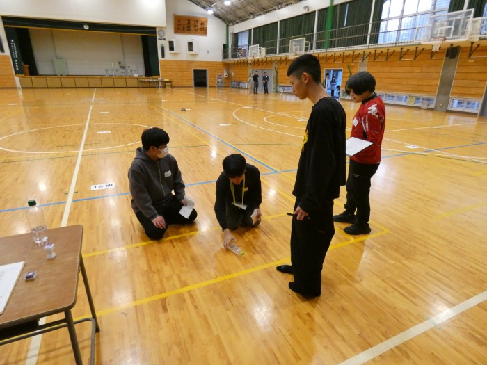 班ごとに校内のチェックポイントを回り、クイズやペットボトルボウリングゲーム等を楽しみました。
