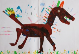 絵画の部 題名「シャワーが嫌すぎて逃げる馬」