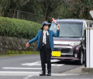 | 毎朝、児童生徒の登校の安全のために、校門で交通整理をされました。 |