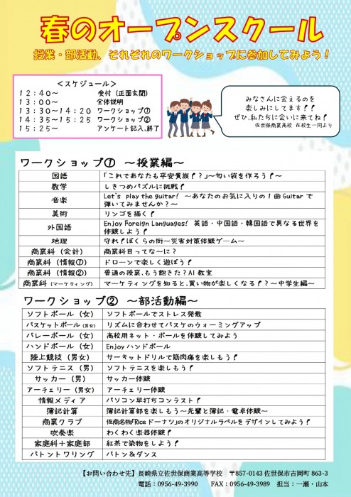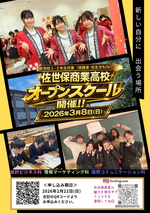 オープンスクールの参加申込はR7佐世保商業オープンスクールよりお願いします。【2月22日(日)締め切り】