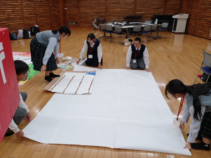 11月7日(金)長崎県高等学校総合文化祭(しおかぜ祭)総合開会式がアルカスSASEBOで行われました。今回は「手紙」がテーマで「手紙を送り合うように、温かい想いをもって人とつながっていきたい」という気持ちが込められています。4月から本番までの約8か月間、生徒たちは式典班、舞台表現班、会場整理班、テクニカル班、空間装飾班、広報記録班に分かれて活動してきました。本校の生徒は装飾班としてアルカスSASEBOの入口階段に貼り絵、手紙を入れるポストなど飾り付けをしました。県北地区の生徒たちと目標達成のため意見を出し合い、作品のアイディアを決めるまでに何度も話し合いました。また各学校でどのような作業ができるか、担当決めや工程の分担など課題に向き合い与えられた状況や条件で「できること」を一生懸命考え完成に導きました。これから文化専門部の活躍も続きますので、各会場で生徒の活躍をご覧ください。