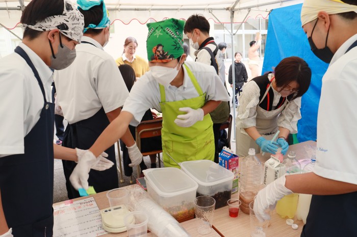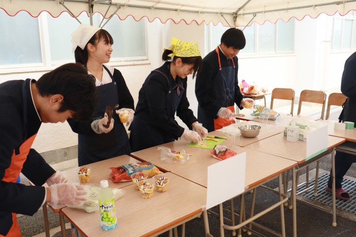 本校に足を運んでいただいた参加者の皆様、うどん調理販売に協力して