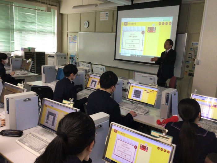 パズル感覚で学んでいきました。受講した生徒からは「プログラムの基礎を学べて良かった。」