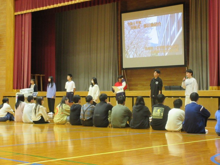 部活動紹介では、各部活動が工夫をこらし、新入生に活動の紹介を行っていました。
