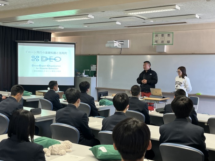 土木科では、ドローン講習など外部講師を招聘した講話や講習会などを行い、