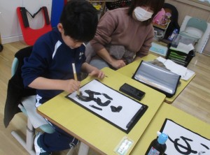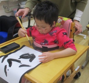 小学部1組(1・2年生)では、生活単元学習「冬の遊び」の学習で書初めをしました。